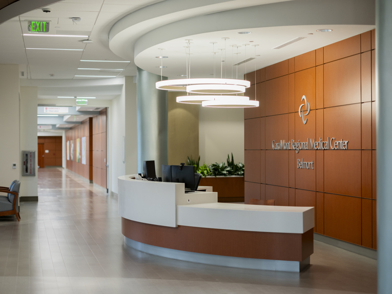 The main lobby at CaroMont Regional Medical Center-Belmont, a state-of-the-art acute care facility and the first hospital to open in Belmont.