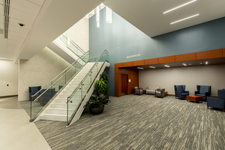 The main lobby at CaroMont Regional Medical Center-Belmont offers a spacious waiting area designed with visitor convenience and comfort in mind.